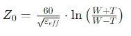 特性阻抗(Z0)由傳輸線的物理結構(如寬度、厚度、介電常數等)決定,其計算公式根據不同類型的傳輸線而異。例如,微帶線的特性阻抗計算公式為: